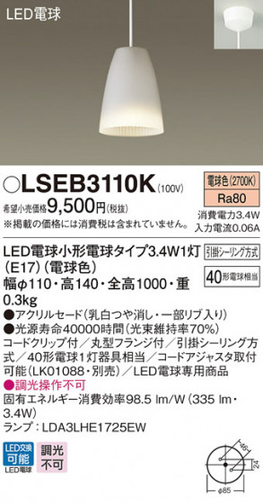 Panasonic LED ペンダントライト LSEB3110K