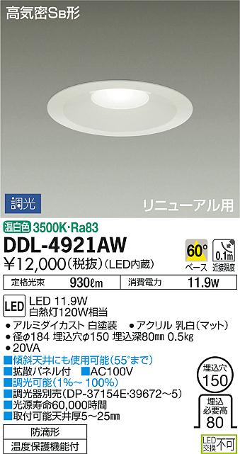 DAIKO 大光電機 ダウンライト(軒下兼用) DDL-4921AW