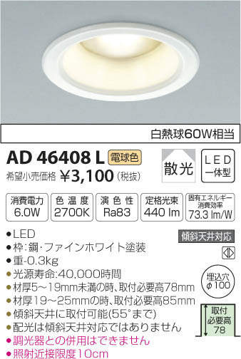 コイズミ照明 KOIZUMI LED M形ダウンライト AD46408L
