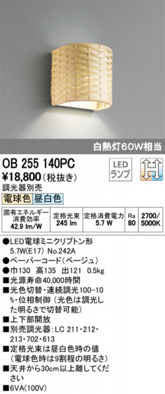 ODELIC オーデリック ブラケット OB255140PC