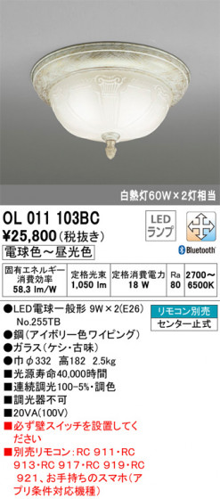 ODELIC オーデリック 小型シーリングライト OL011103BC