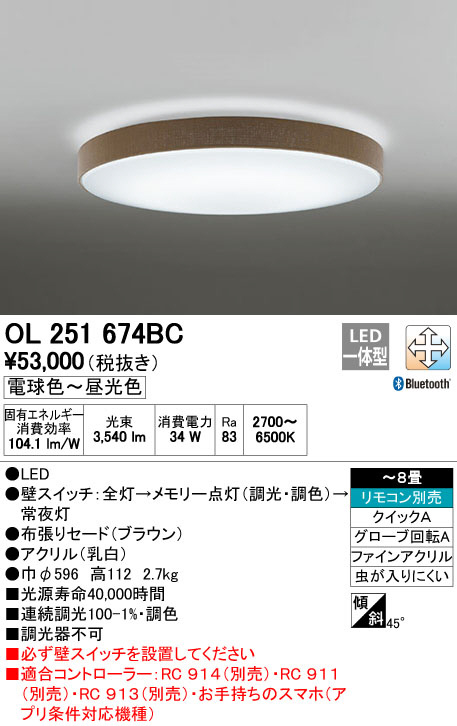 ODELIC オーデリック LED シーリングライト OL251674BC