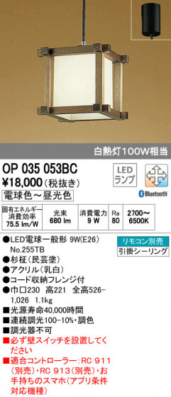 ODELIC オーデリック LED ペンダントライト OP035053BC