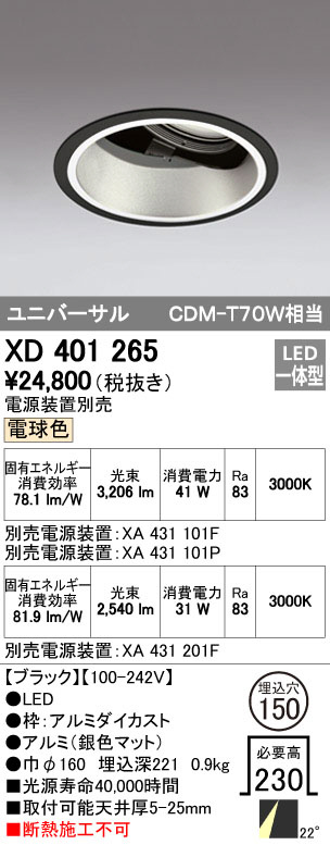 ODELIC オーデリック ダウンライト XD401265