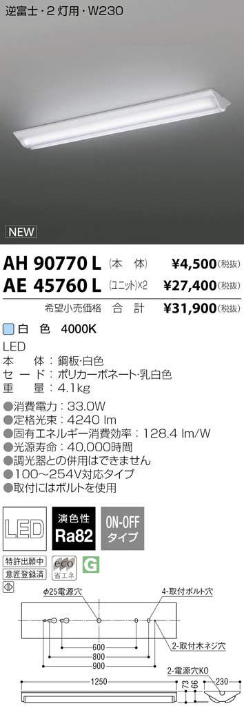 コイズミ照明 KOIZUMI LED ベースライト AE45760L