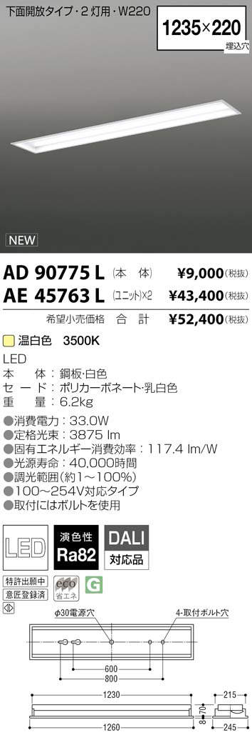 コイズミ照明 KOIZUMI LED ベースライト AE45763L