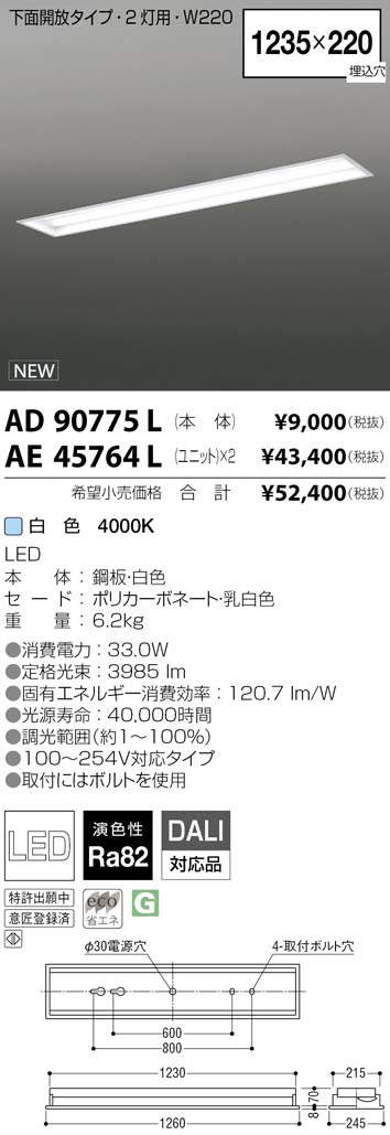 コイズミ照明 KOIZUMI LED ベースライト AE45764L
