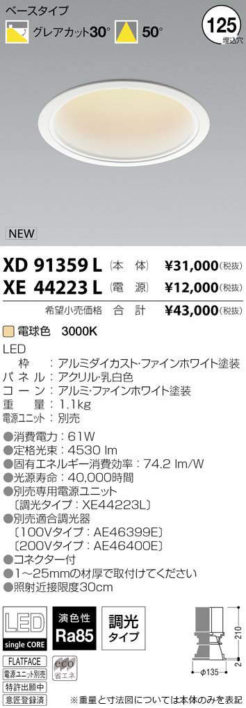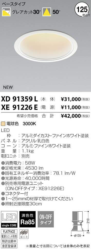 コイズミ照明 KOIZUMI LED ダウンライト XD91359L