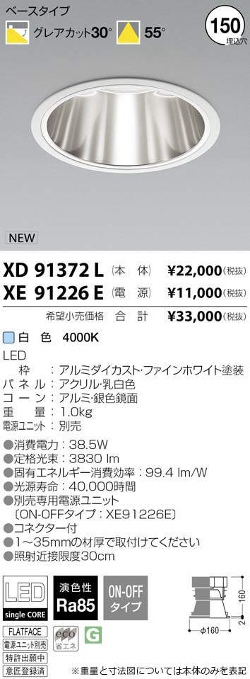 ●別売専用電源ユニット〔ON-OFFタイプ:XE91226E ¥11,000(税抜)〕