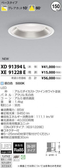 コイズミ照明 KOIZUMI LED ダウンライト XD91394L