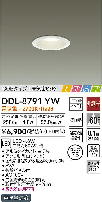 DAIKO 大光電機 ダウンライト DDL-8791YW