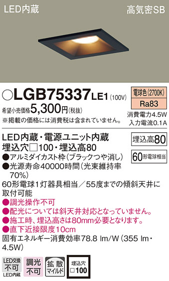 Panasonic ダウンライト LGB75337LE1