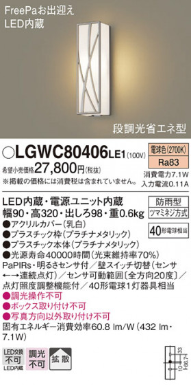 Panasonic エクステリアライト LGWC80406LE1 | 商品情報 | LED照明器具・照明機器の激安通信販売・格安通販・業務用販売・見積もり販売 照明倉庫 -LIGHTING DEPOT-