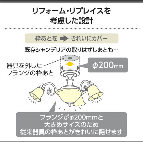 ※天井に「ローゼット」が付いている場合、木ネジは不要で天井を傷つけることなく簡単に取り付けられます。