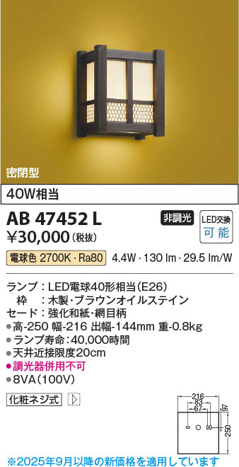Koizumi コイズミ照明 LED和風ブラケット AB47452L