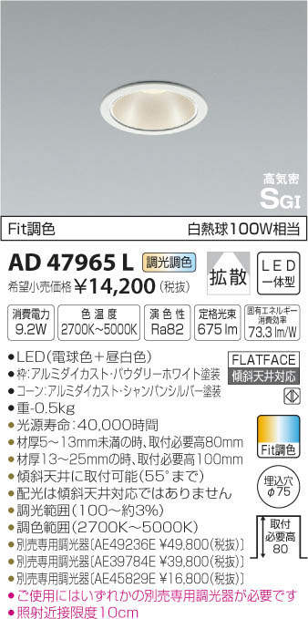 コイズミ照明 KOIZUMI 高気密ダウンライト AD47965L