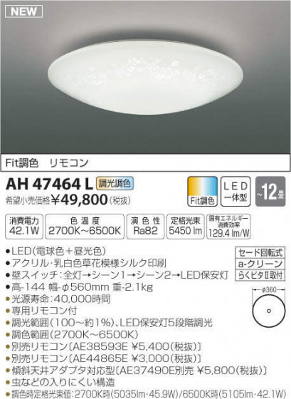 コイズミ照明 KOIZUMI LED シーリング AH47464L