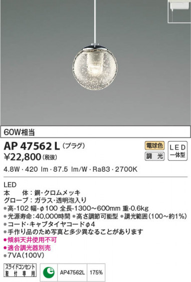 KOIZUMI コイズミ照明 ペンダント AP47562L