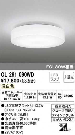 ODELIC オーデリック 小型シーリングライト OL291090WD