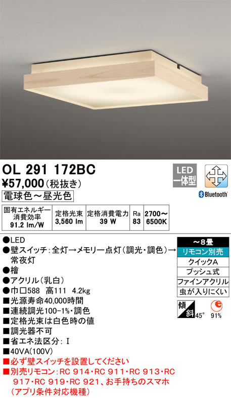 ODELIC オーデリック シーリングライト OL291172BC