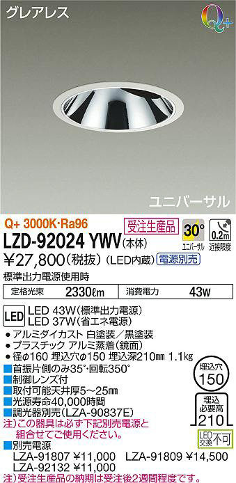 DAIKO 大光電機 ユニバーサルダウンライト LZD-92024YWV