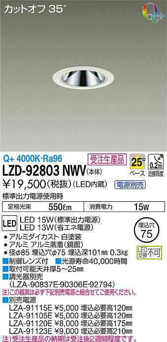 DAIKO 大光電機 ダウンライト LZD-92803NWV