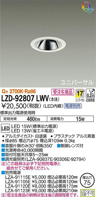 DAIKO 大光電機 ユニバーサルダウンライト LZD-92807LWV
