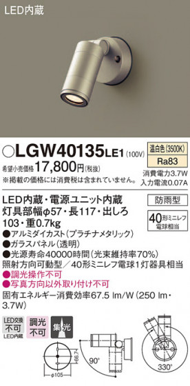 Panasonic エクステリアスポットライト LGW40135LE1