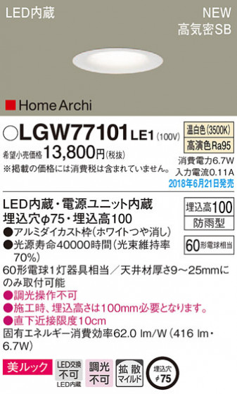 Panasonic ダウンライト LGW77101LE1