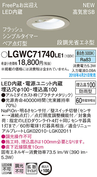 Panasonic ダウンライト LGWC71740LE1