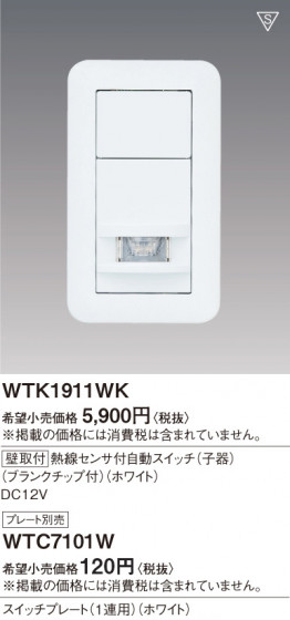 Panasonic 熱線センサ付自動スイッチ(壁用子器) WTK1911WK