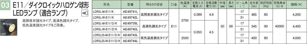 ●ダイクロイックハロゲン球形LEDランプ (適合ランプ)(E11)