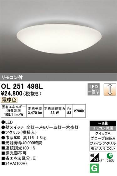 ODELIC オーデリック シーリングライト OL251498L