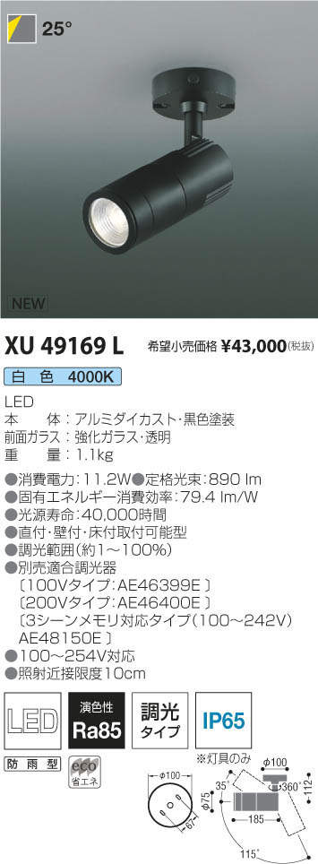 コイズミ照明 KOIZUMI エクステリアスポットライト XU49169L
