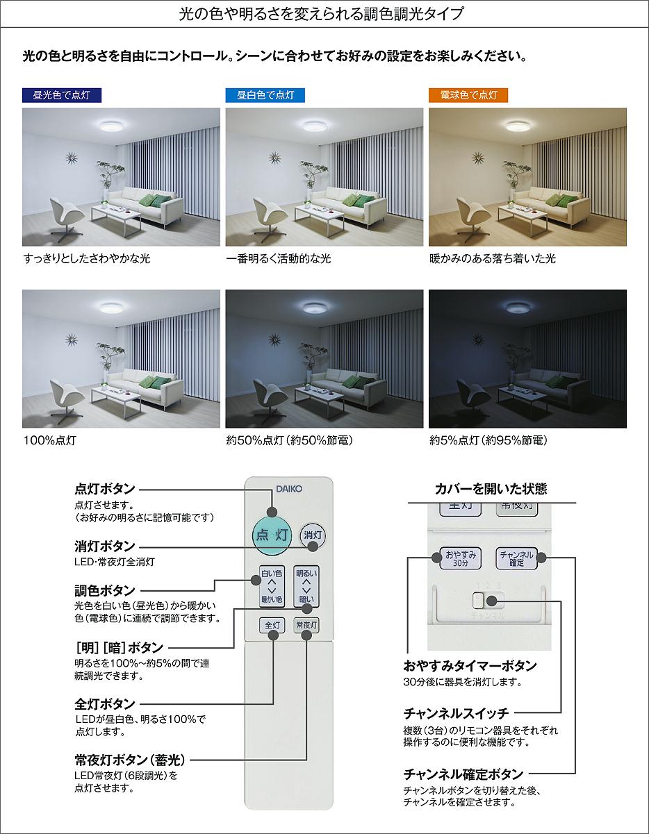 ■プルレススイッチ付(全灯-※点灯-常夜灯)※消灯前の調色調光状態