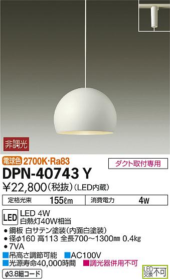 DAIKO 大光電機 小型ペンダント DPN-40743Y