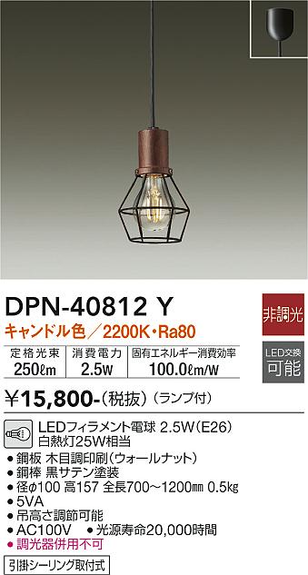 DAIKO 大光電機 小型ペンダント DPN-40812Y