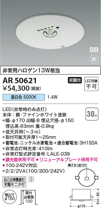 Koizumi コイズミ照明 LED S形非常灯 AR50621