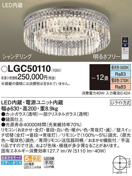 Panasonic シーリングライト LGC50110