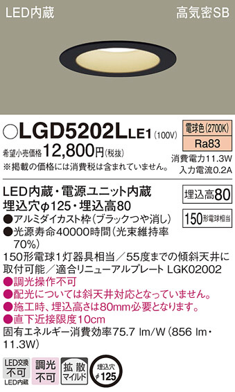 Panasonic ダウンライト LGD5202LLE1