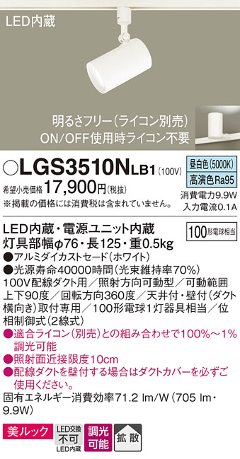 Panasonic スポットライト LGS3510NLB1 | 商品情報 | LED照明器具・照明機器の激安通信販売・格安通販・業務用販売・見積もり販売 照明倉庫 -LIGHTING DEPOT-