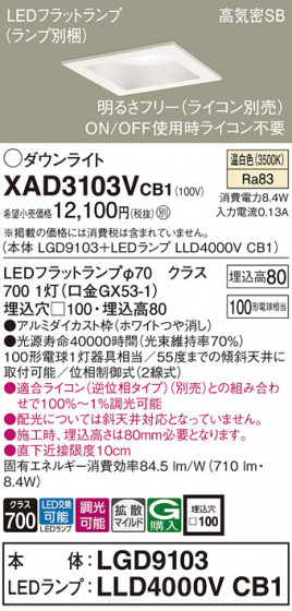 Panasonic ダウンライト XAD3103VCB1