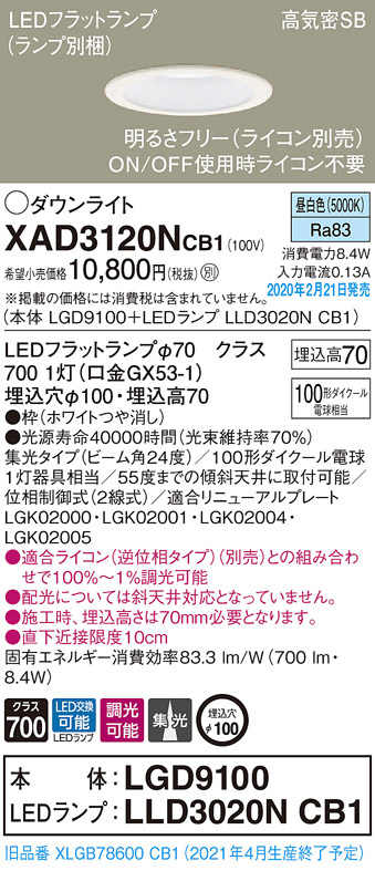 Panasonic ダウンライト XAD3120NCB1