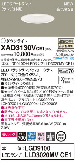 Panasonic ダウンライト XAD3130VCE1