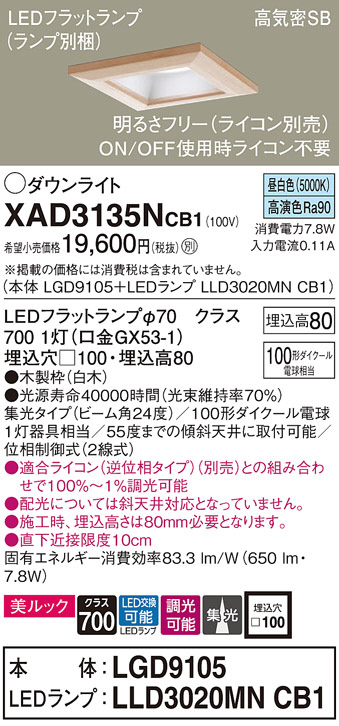 Panasonic ダウンライト XAD3135NCB1