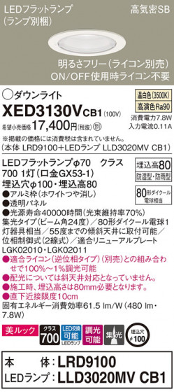 Panasonic エクステリアダウンライト XED3130VCB1