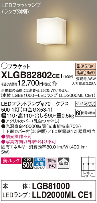 Panasonic ブラケット XLGB82802CE1