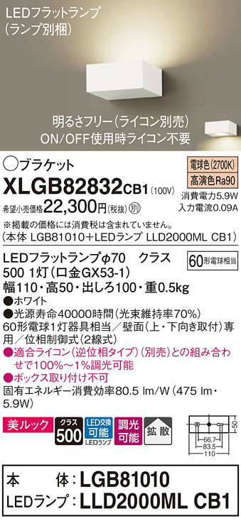 Panasonic ブラケット XLGB82832CB1 | 商品情報 | LED照明器具・照明機器の激安通信販売・格安通販・業務用販売・見積もり販売 照明倉庫 -LIGHTING DEPOT-