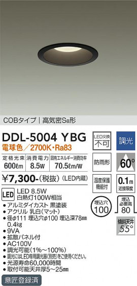 DAIKO 大光電機 ダウンライト(軒下兼用) DDL-5004YBG