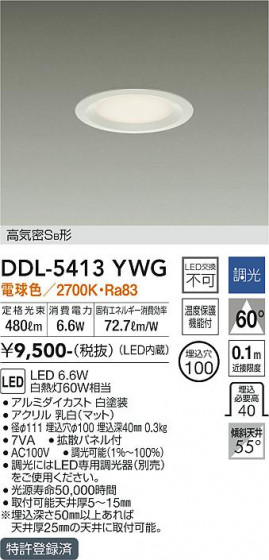 DAIKO 大光電機 ダウンライト DDL-5413YWG